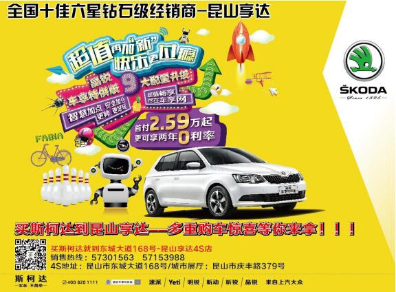 晶銳車享版首付僅需2.59,尊享20利率信貸政策,3000元置換補貼,多重購車驚喜等你來拿,就(jiù)玩銀在昆山享達斯柯達!