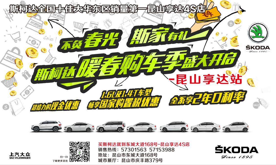 3月12日斯柯達不負春光 312春季購車嘉年華席卷鹿城,屆時(shí)廠家負責人親臨昆山享達活動現場,全系車型暖春特惠,分期付款零利息,更有多輪抽獎大禮等您來拿!盡在3月12日14:00-16:00,優惠不容錯過(guò)!