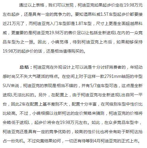 萬元起(qǐ)步 柯迪亞克定價是否合冷有理?