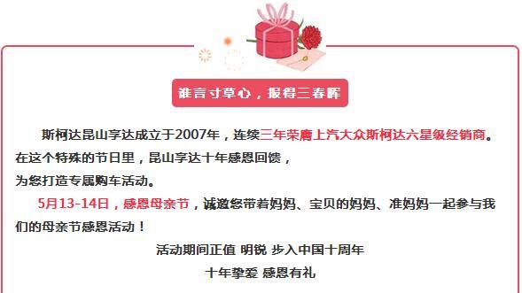 [十年感恩回饋]昆山享達母親節爲愛放“價”