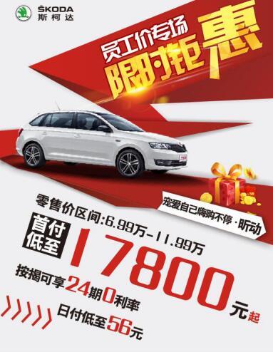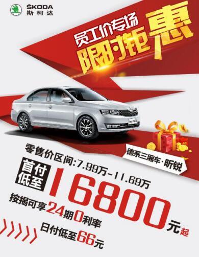 斯柯達昕銳員工價專場,限時(shí)钜惠,首付1.68萬起(qǐ),盡享2年0利率信貸政策,日付僅需66元,愛車立馬“貸”回家!