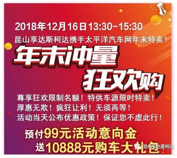 12月16日昆山享達斯柯達攜手太平洋汽開和車網超級特賣會(huì)