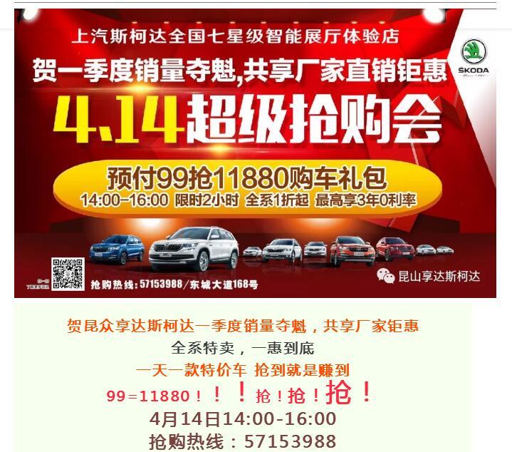 預付99搶11880購車豪禮  414斯柯達超級搶購會(huì)
