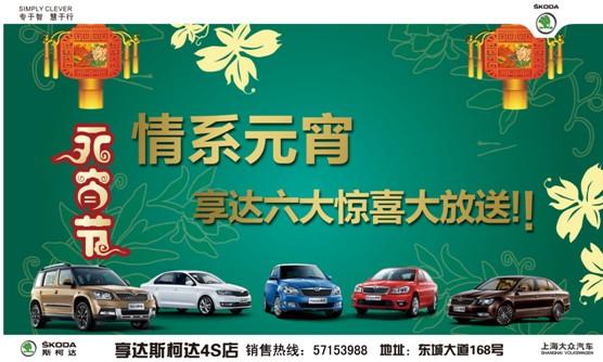 在元宵佳節擁抱情人節之際,享達4S店特舉辦“情系元宵 享達六大驚喜大放送”活動,掀起(qǐ)2014年購車熱潮第一波!凡2月14-15日到店賞車、試駕、定車的客戶都(dōu)可參與有獎猜燈謎遊戲,還(h民數ái)有情人節禮物和民間藝人DIY禮品贈送。活動期間定車更可享超級驚喜,2014開(kāi)門大吉大利,一定讓您滿載而歸。享達斯柯達短你讓您新年把好(hǎo)運、喜氣、平安和浪漫通通南站帶回家!