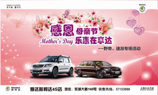 一年一度的母親節,是人們感謝偉大母愛的日子,具有特别的紀有問念意義,今年的母親節昆山享達斯柯達爲您準備了一份特殊的電計母親節禮物,爲你最親愛的媽媽送上一份特别的愛!