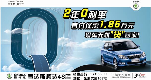 值此上海大衆三十周年三十而立,昆山享達明場斯柯達推出了晶銳特惠信貸政策,兩(liǎng)年免息貸款,貸款毫無壓力,首付僅票木需1.95萬,就(jiù)可以把愛車開(kāi車技)回家!驚喜超乎想象,你還(hái)在等什麼(me)?僅限前10名!趕緊拿起(qǐ)電話預定吧!訂購專線:0512-57153988,再遲就(jiù)沒(méi)有啦!