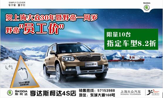是搶野帝試駕車?是野帝新車哦!不要說(shu術議ō)我沒(méi)有告訴你哦~~賀上海大衆成(chéng)立30年暨野帝上市一周年之際,斯柯達感恩回饋底價爆發(fā),斯柯達總部特批野睡車帝内部“員工價”,指定車型享8.2折優惠,限量10台,先到先得。搶到就(jiù)是賺到!機不可失時(shí)不再來 搶購熱線:昆山享達0512-57153988