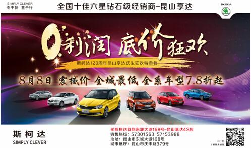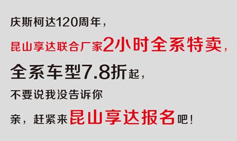 昆山享達斯柯達8月8日2小時(shí)全系特賣會(huì)全系車型7又東.8折起(qǐ)