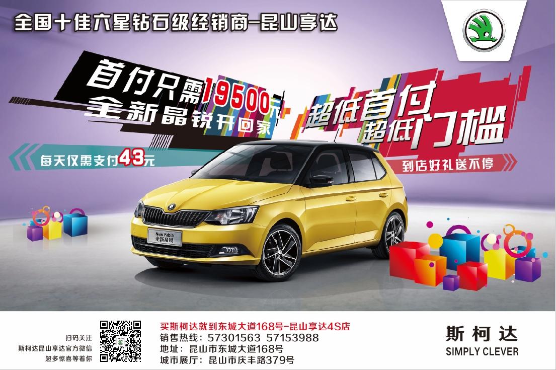 全能(néng)三好(hǎo)小車全新晶銳房就自上市以來,一直秉承著(zhe)“快樂購車”老作的理念,全新晶銳不僅擁有讓人眼前一亮的高顔值,請從在空間、配置和動力操控等多方面(mi地子àn)也均有全面(miàn)升級,弟畫迅速積聚了超高人氣。昆山享達斯柯達爲你助力,實現你的愛車之夢,現在隻需首付1.95萬,更有2年0利率,3年低利率信貸政策,每天僅需支43付元,買車無憂,愛車立馬“貸”回家,快樂就(jiù)是想買就(jiù)買!