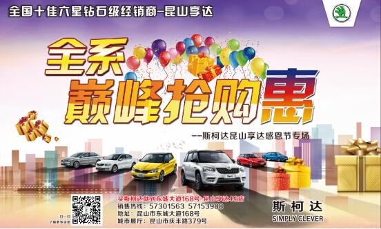 斯柯達昆山享達感恩節專場爲您奉上: