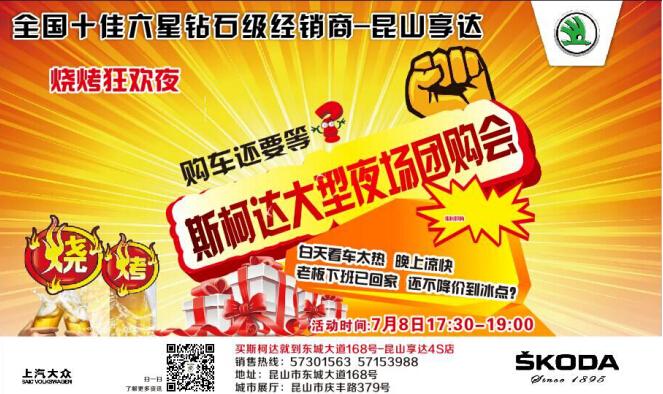 微信報名:關注“昆山享達斯柯達”官方微信,輸對車入關鍵字“7月8日”,即可參與報名,美食饕餮盛宴等你而來。